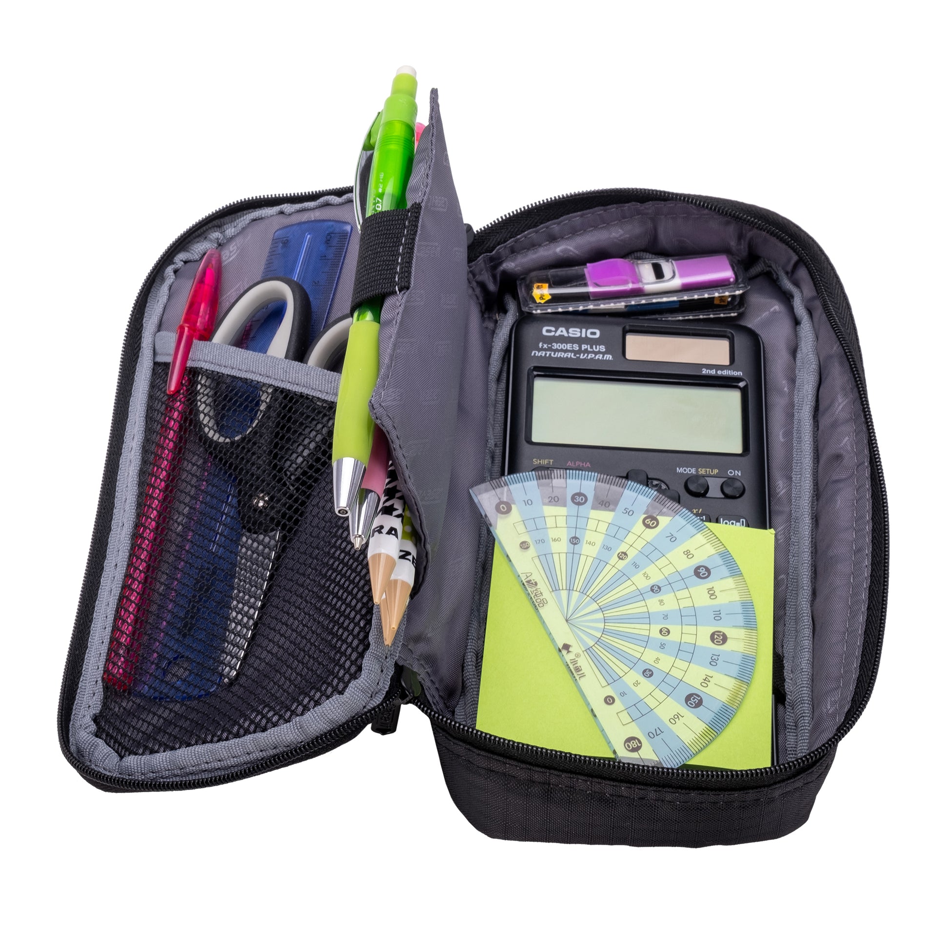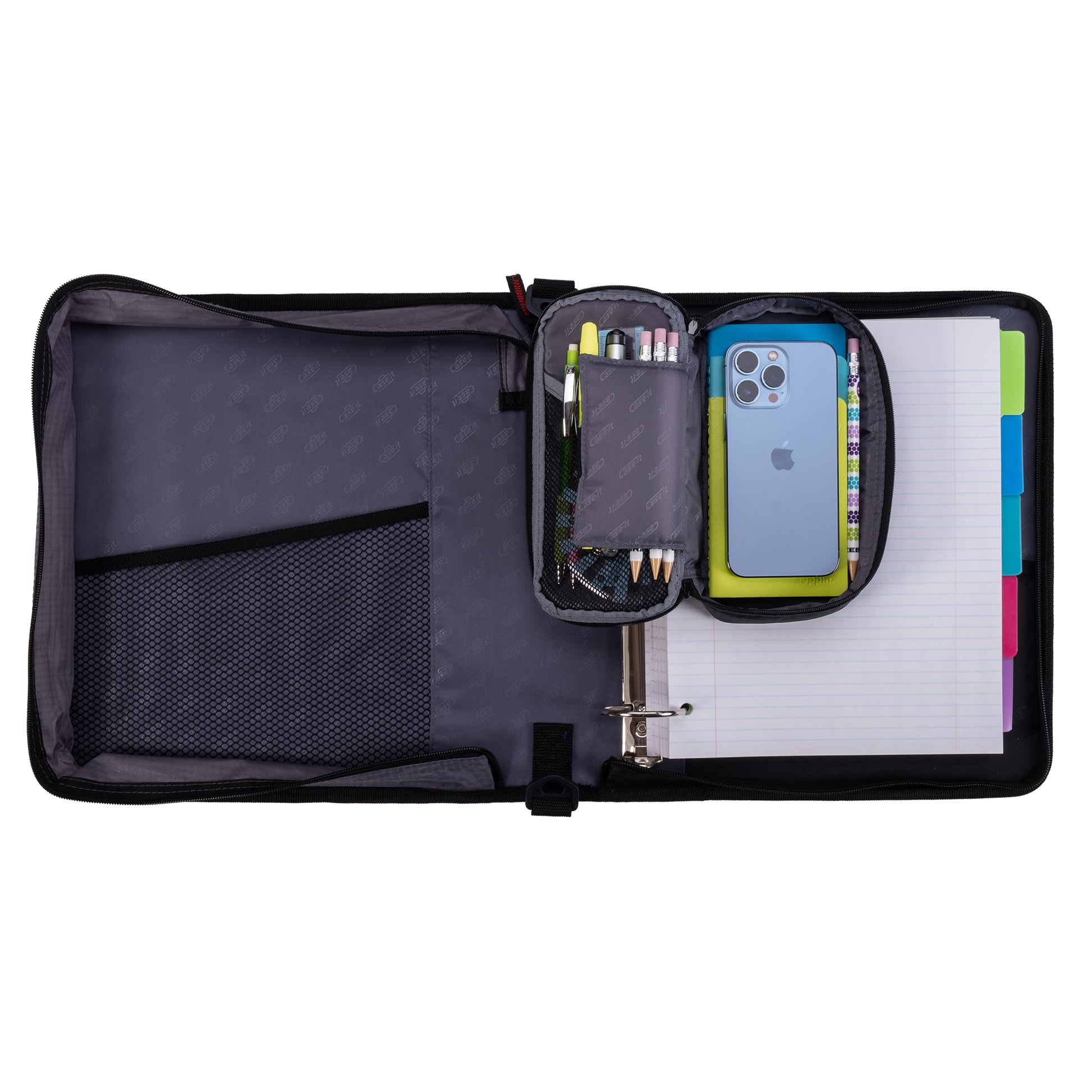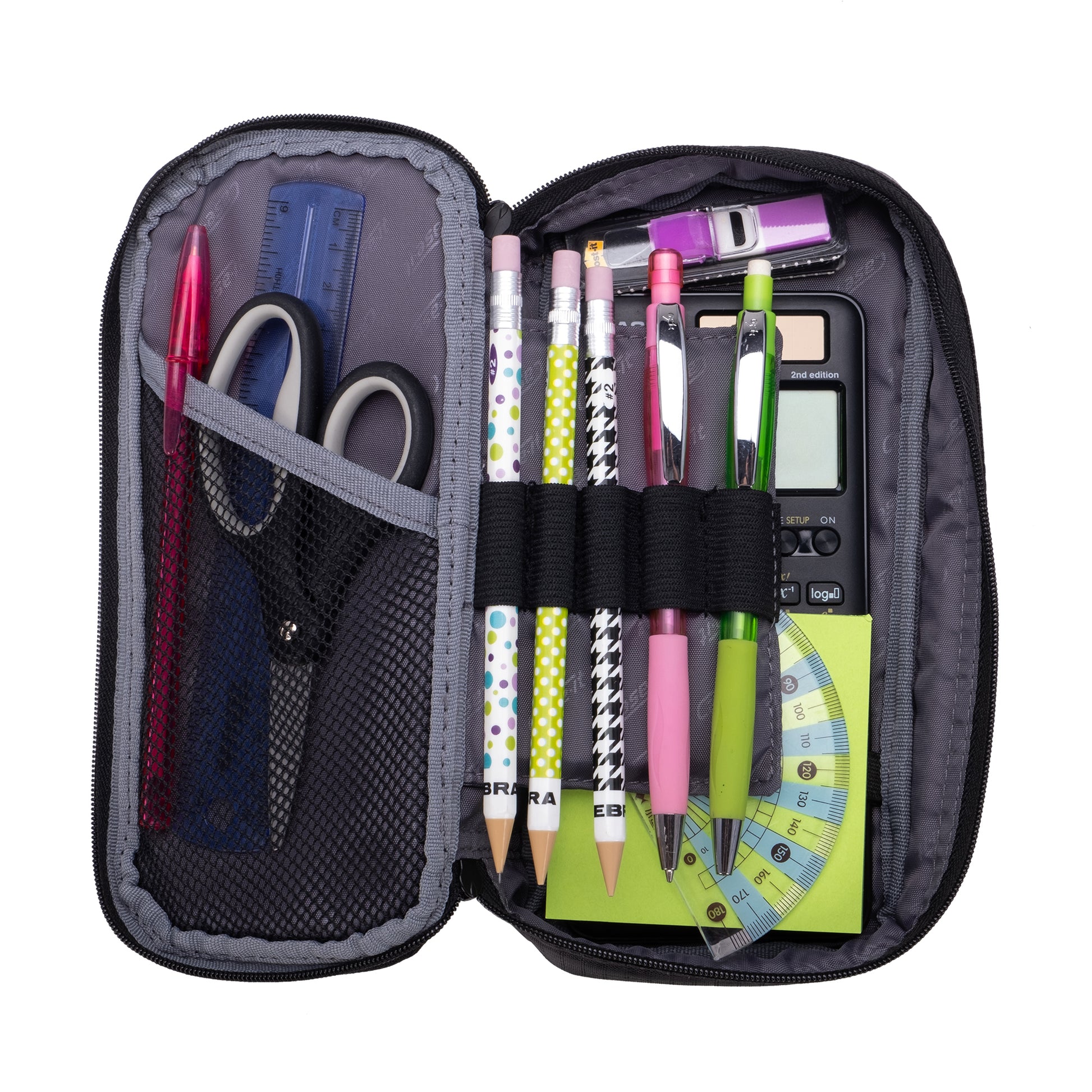 When you're taking an exam or attending a meeting, digging for a pen or highlighter can break your focus. With elastic pen loops and a mesh pocket, your tools stay visible and within reach.